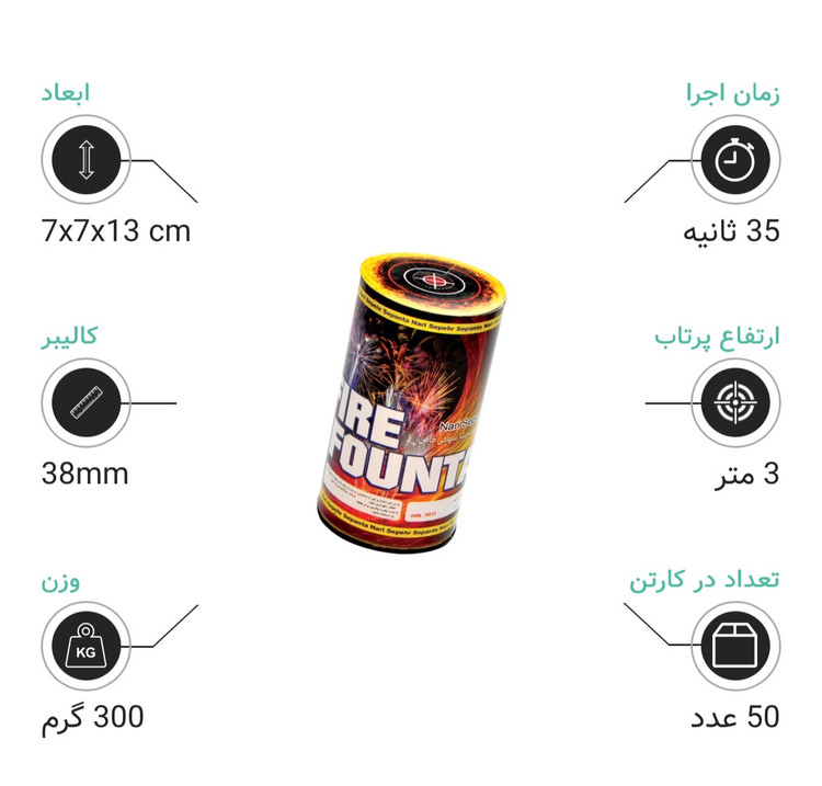 - اگر به دنبال یک نورافشانی جذاب و رنگارنگ هستید، آبشار سهند ۲ یک انتخاب بینظیر برای شماست. این محصول با طراحی زیبا و زمان اجرای ۳۵ ثانیه، میتواند هر فضایی را به محلی برای شادی و لذت تبدیل کند و جلوهای خاص به جشنها و مراسمهای شما ببخشد.