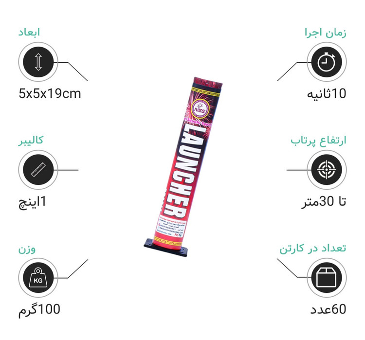- ابعاد جمعوجور ۵x۵x۱۹ سانتیمتر و وزن سبک ۱۰۰ گرم باعث شده که مینی لانچر بهراحتی قابل استفاده و حمل باشد. این محصول گزینهای فوقالعاده برای اضافه کردن هیجان و زیبایی به جشنهای شما است.