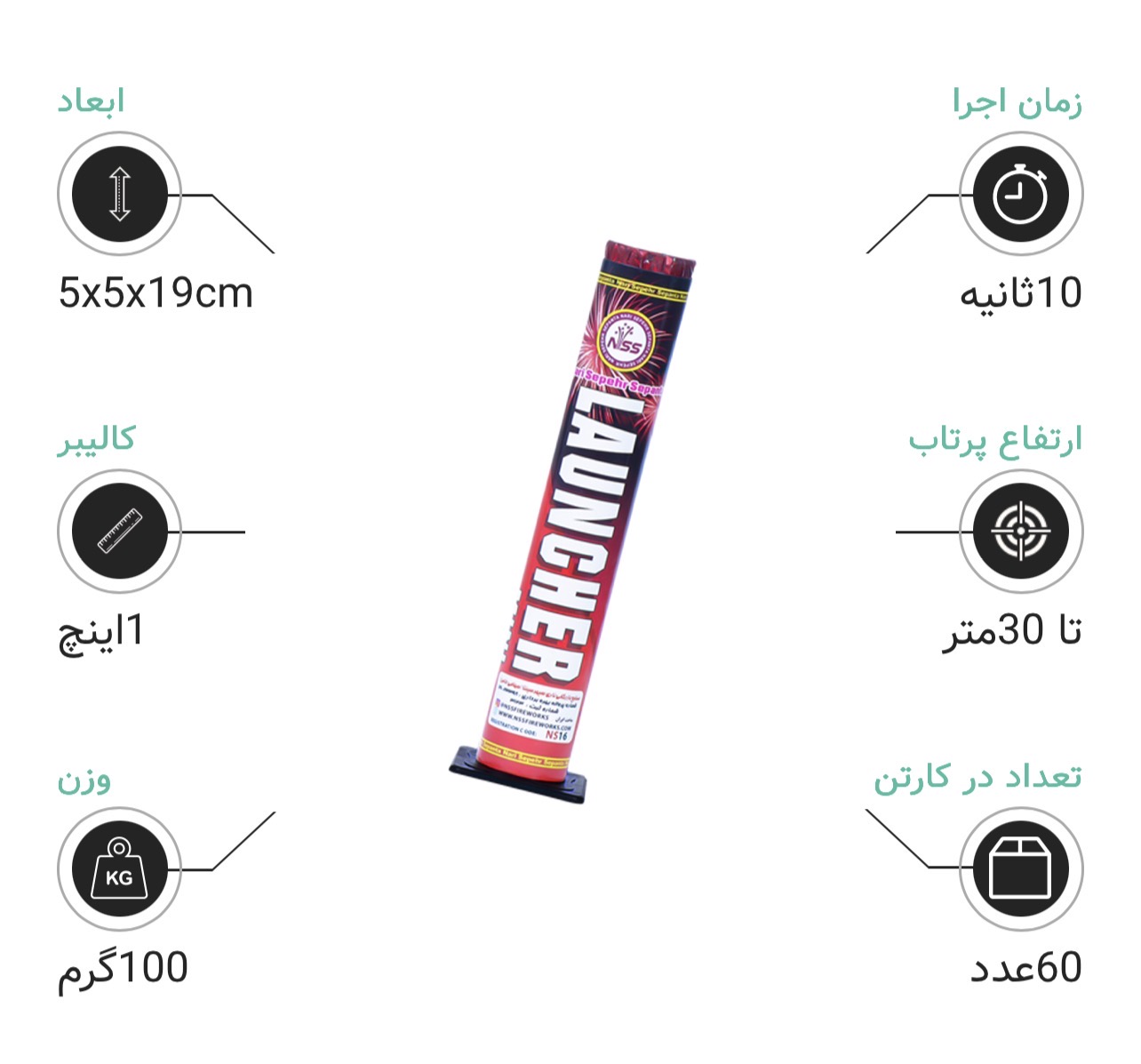 - ابعاد جمعوجور ۵x۵x۱۹ سانتیمتر و وزن سبک ۱۰۰ گرم باعث شده که مینی لانچر بهراحتی قابل استفاده و حمل باشد. این محصول گزینهای فوقالعاده برای اضافه کردن هیجان و زیبایی به جشنهای شما است.