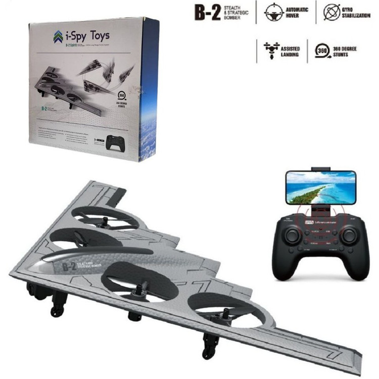طراحی جذاب شبیه به بمبافکن واقعی B-2, دارای چهار موتور قدرتمند, جنس: فوم EPP با دوام بالا, مقاوم در برابر ضربه و سقوط, قابلیت چرخش 360 درجه, سیستم برخواستن از زمین بدون حرکت روی زمین, قابلیت برخواستن و نشستن با یک دکمه, قابلیت ضبط ویدیو و اتصال به اپلیکیشن, دارای کنترل 4 کاناله, سطح مهارت اپراتور: مبتدی و نیمه حرفه ای